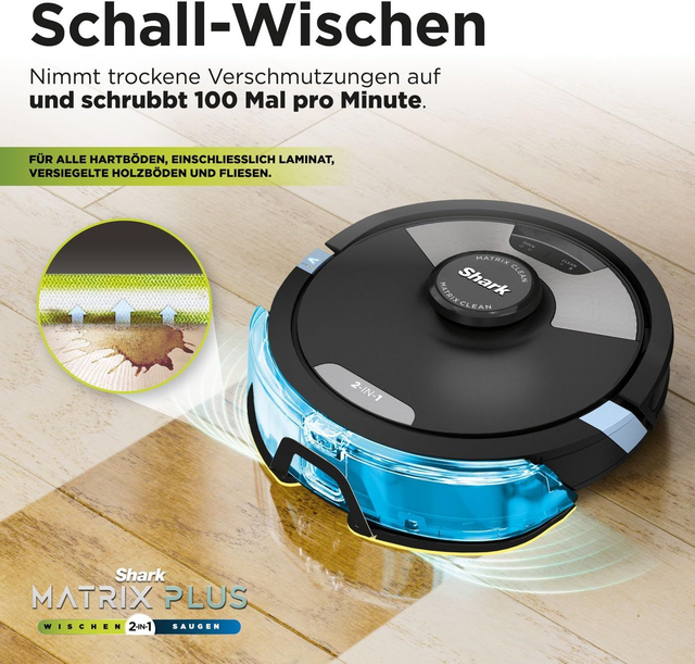 Der Shark Matrix Plus 2-in-1 RV2620WDEU ist ein effizienter Haushaltsroboter, der sowohl saugt als auch wischt. Er navigiert gezielt durch Ihre Räume, reinigt Hartböden und Teppiche zuverlässig und übernimmt so einen großen Teil Ihrer Bodenreinigung – ideal für alle, die einen komfortablen Alltag mit sauberem Zuhause möchten.
